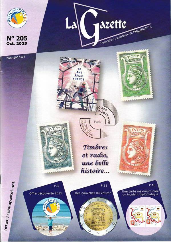 Le 205e numéro de La Gazette de PHILAPOSTEL, revue trimestrielle de l'association des philatélistes et collectionneurs du personnel des Groupes La Poste et Orange, vient de paraître.
