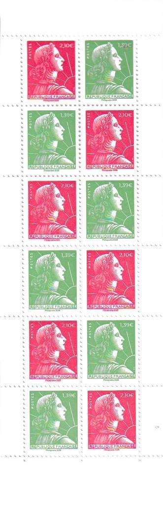 Carnet de 6 timbres LV à 1.39 € - 6 timbres LI à 2.10 € - 1 timbre LV 100g à 2.78 € - 1 timbre à 4.50 € gommés