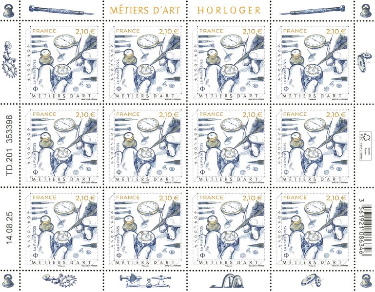 La Poste émet un timbre dans la série Métiers d’Art, initiée en 2016, c’est le savoir-faire de l’horloger qui est mis à l’honneur, il succède à celui du Mosaïste.