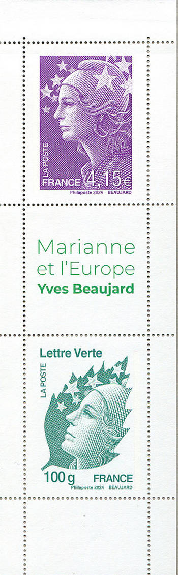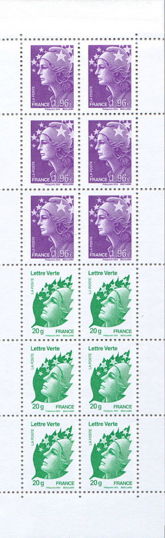Carnet de 6 timbres LV à 1.29 € - 6 timbres LI à 1.80 € - 1 timbre LV 100g à 2.32 € - 1 timbre à 3.70 € gommés