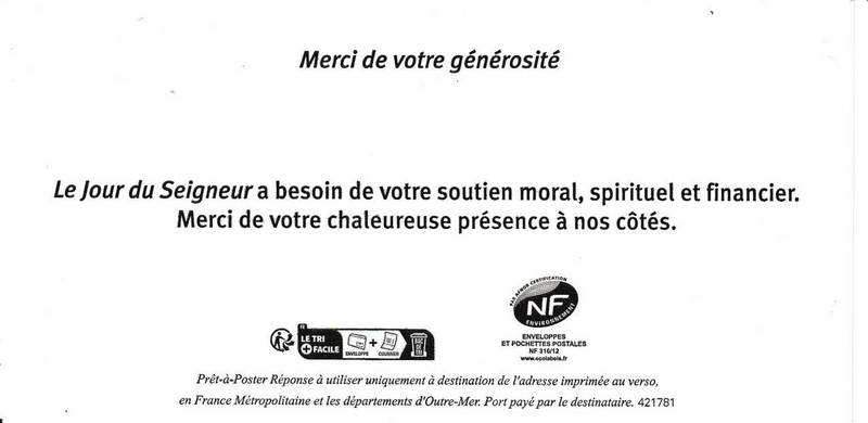 Merci pour votre générosité Le jour du Seigneur a besoin de votre soutien moral, spirituel et finanvier. Merci de votre chaleureuse présence à nos côté.