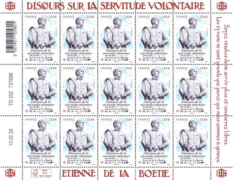 La Poste émet un timbre en l’honneur d’Étienne de La Boétie, auteur du célèbre Discours de la servitude volontaire.