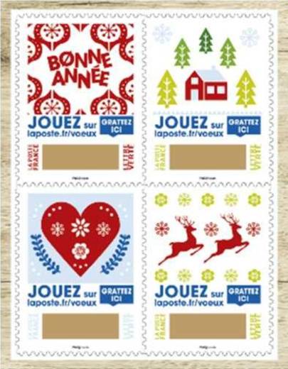 Les timbres du carnet « LE TIMBRE À GRATTER » sont illustrés d'images festives qui vous invitent à adresser vos vœux ou à jouer, ou à inviter le destinataire du courrier à gratter pour remporter un cadeau ! ■